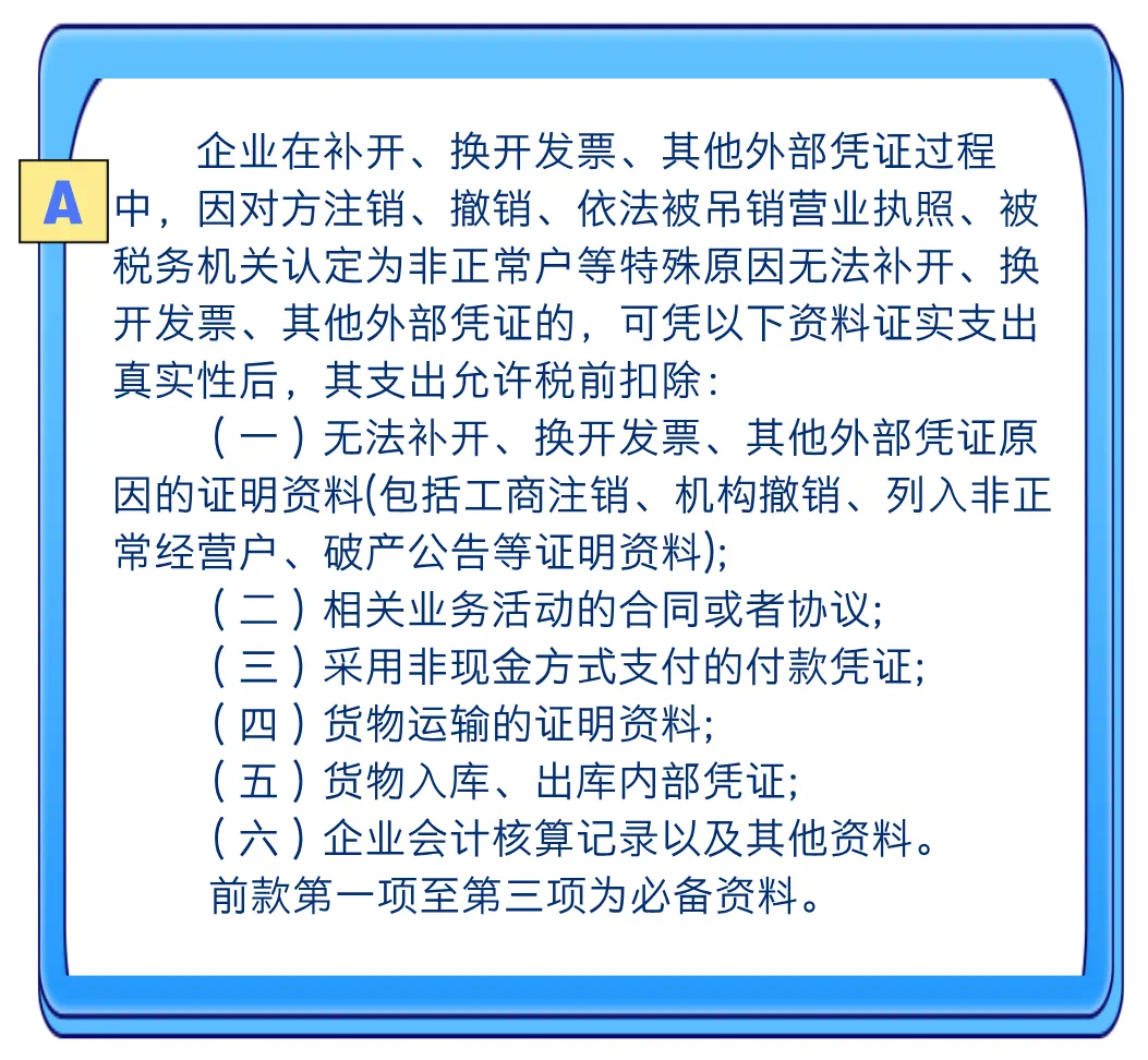 政策依據:《國(guó)家(jiā)稅務總局關于發布〈企業(yè)所得(de)稅稅前扣除憑證管理(lǐ)辦法〉的(de)公告》(國(guó)家(jiā)稅務總局公告2☆018年(nián)第28号)第十四條