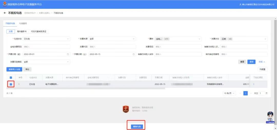 提醒:隻能(néng)撤銷當期不(bù)抵扣勾選,不(bù)能(néng)撤銷往期不(bù)抵扣勾選。