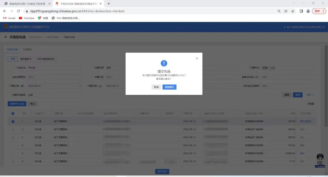 如(rú)勾選有(yǒu)誤,可(kě)進行(xíng)撤銷勾選。将發票(piào)勾選狀态設置為(wèi)“已勾選”,點擊“查詢”,确認本次要(yào)撤銷勾選的(de)發票(p•iào)後,再點擊“提交”按鈕,彈出的(de)勾選提示信息窗(chuāng)口,點擊“繼續提交”後撤銷勾選完成。