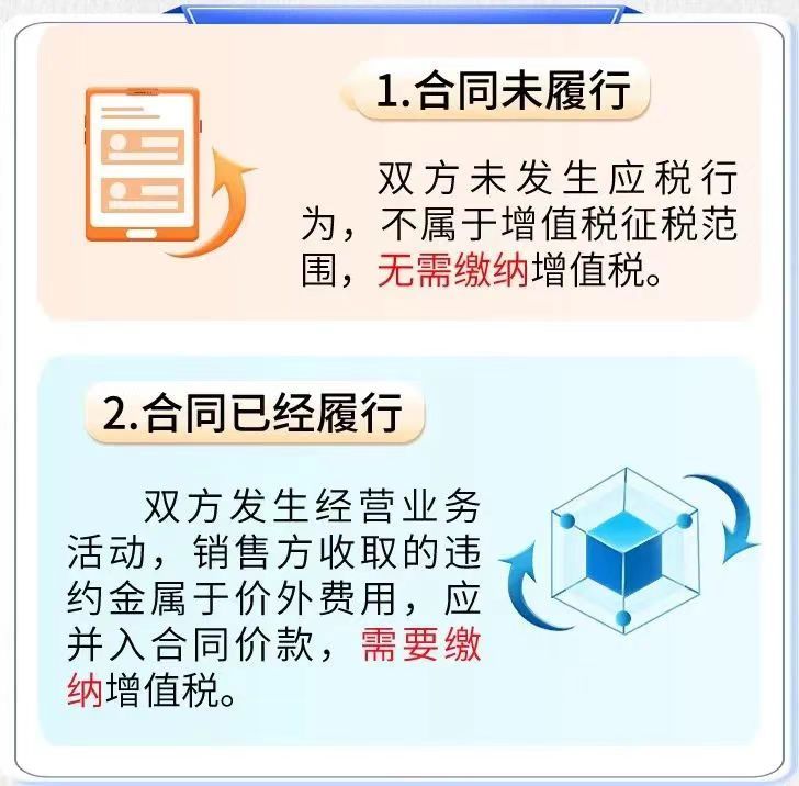 (二)合同已經履行(xíng):雙方發生(shēng)經營業(yè)務活動,銷售方收取的(de)違約金(jīn)屬于價外(wài)費(fèi)用(yòng),♠應并入合同價款,需要(yào)繳納增值稅。