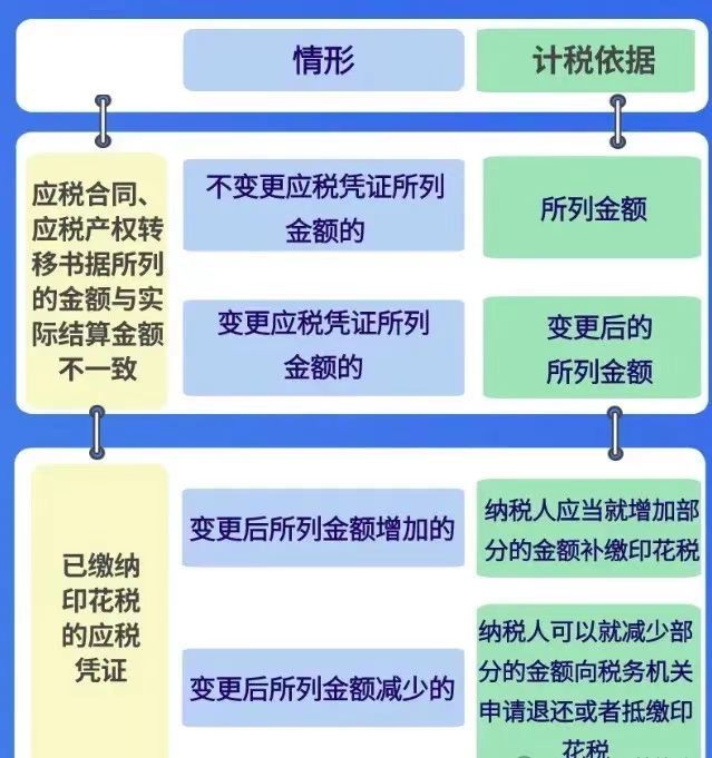 已繳納印花(huā)稅的(de)應稅憑證,變更後所列金(jīn)額增加的(de),納稅人(rén)應當就(jiù)增加部分(fēn)的(de)金(jī&n)額補繳印花(huā)稅;變更後所列金(jīn)額減少(shǎo)的(de),納稅人(rén)可(kě)以就(jσiù)減少(shǎo)部分(fēn)的(de)金(jīn)額向稅務機(jī)關申請(qǐng)退還(hái)或者抵繳印花(huā)稅。