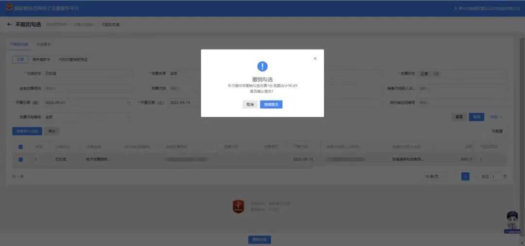 提醒:隻能(néng)撤銷當期不(bù)抵扣勾選,不(bù)能(néng)撤銷往期不(bù)抵扣勾選。