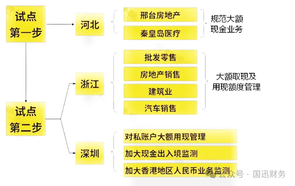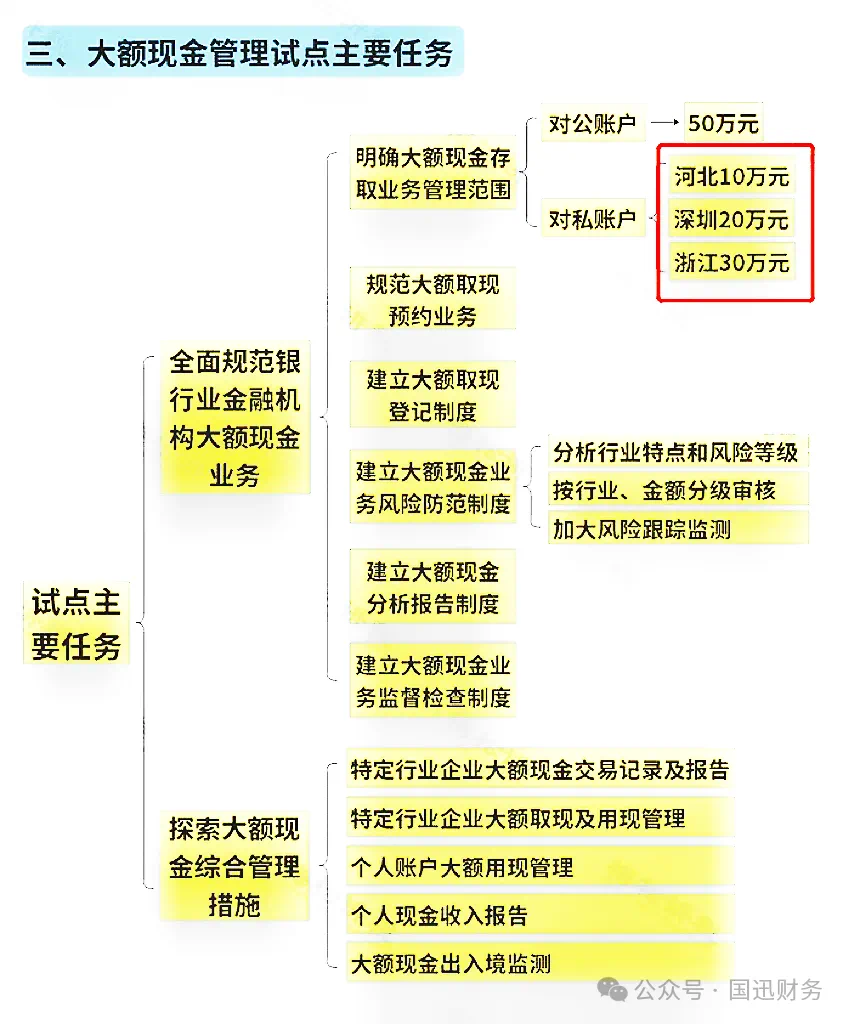 2、人(rén)民(mín)銀(yín)行(xíng)于2020年(nián)7月(yuè)發布了(lφe)《中國(guó)人(rén)民(mín)銀(yín)行(xíng)關于開(kāi)展大(dà)額現(xiàn)金(jīn)管理(lǐ)試點的(de)通(tōng)知(zh÷ī)》,在河(hé)北(běi)省、浙江省和(hé)深圳市(shì)開(kāi)展大(dà)額現(xiàn)金(jīn)管理(lǐ)試點,具體(tǐ)如(≠rú)下(xià):